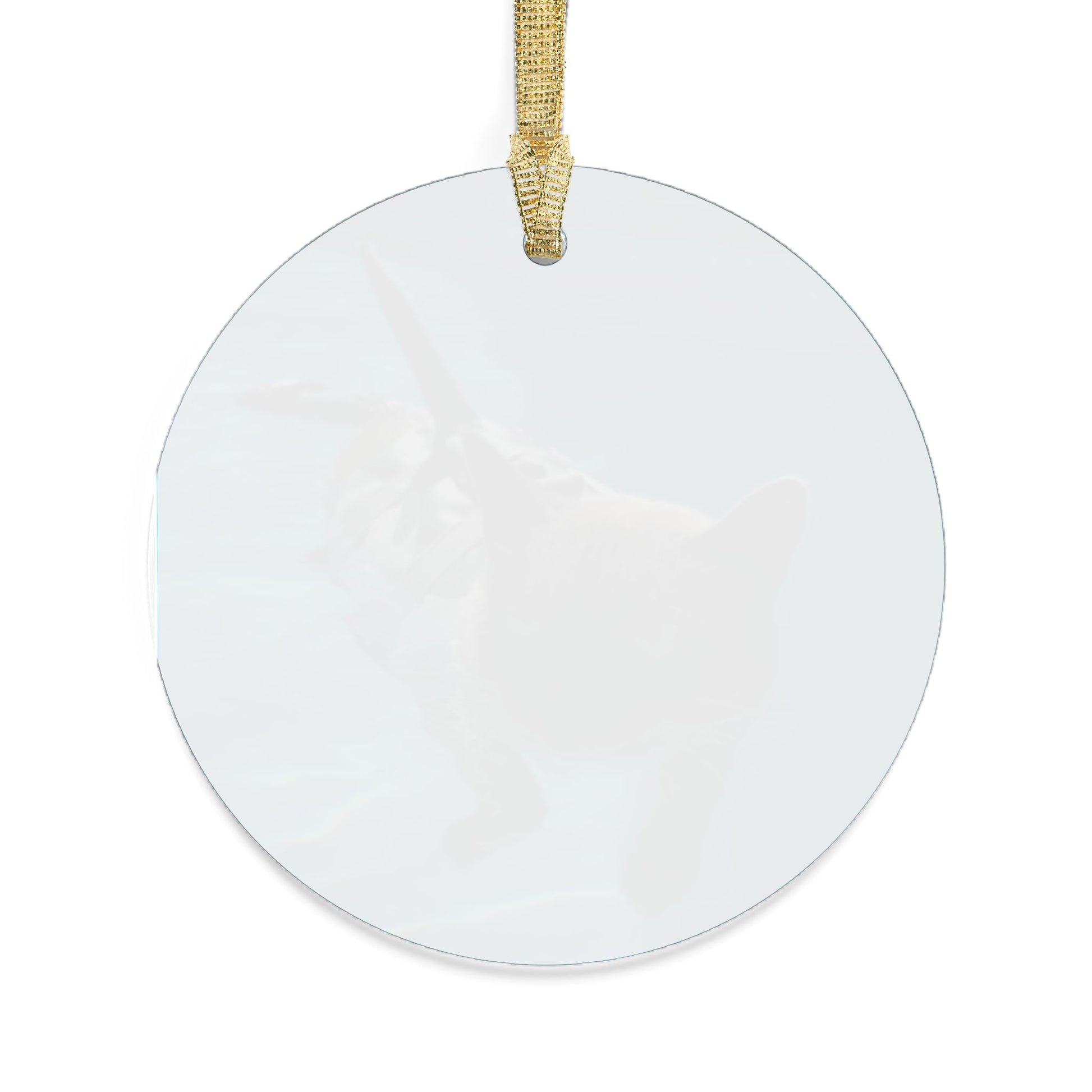 A clear acrylic ornament that captures a special Sharkitty moment—printed on one side in vivid, glossy color and finished with a gold ribbon for hanging. The lightweight, shatter-resistant disc keeps colors crisp and glossy, turning a treasured photo or artwork into a cheerful keepsake. Available singly or in bundles, it slips easily onto a tree, wreath, or wall hook and adds a personal, playful touch to seasonal décor or everyday displays.
